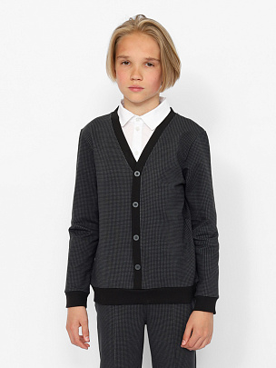 Водолазка для мальчика из трикотажа в рубчик, гладкокрашенная, манжеты по низу рукава.