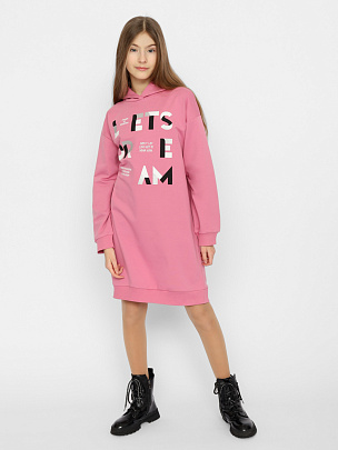 Платье для девочки из футера. Изделие с длинными рукавами, отложным съемным воротником из кружева. Отрезное чуть ниже линии талии. Сзади застегивается на пуговку. Декорировано бантиком.